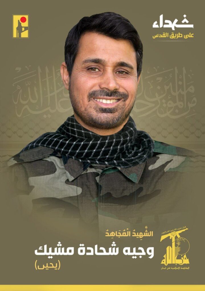 بمزيد من الفخر والإعتزاز، زفت المقاومة الإسلامية الشهيد المجاهد وجيه شحادة مشيك «يحيى» من بلدة وادي أم علي في البقاع، والذي ارتقى شهيداً على طريق القدس.