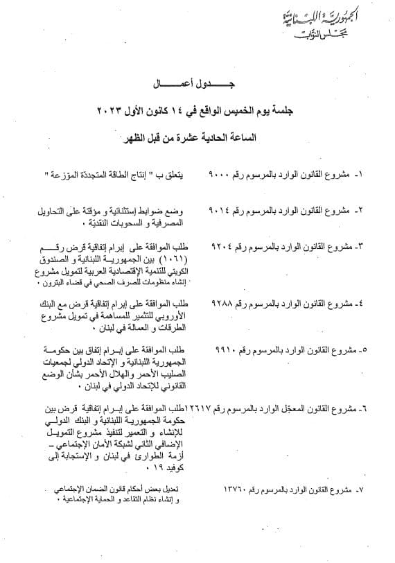 يعقد مجلس النواب غداً الخميس في 14 الحالي جلسة تشريعيّة وجدول أعمالها في الصّور المرفقة.