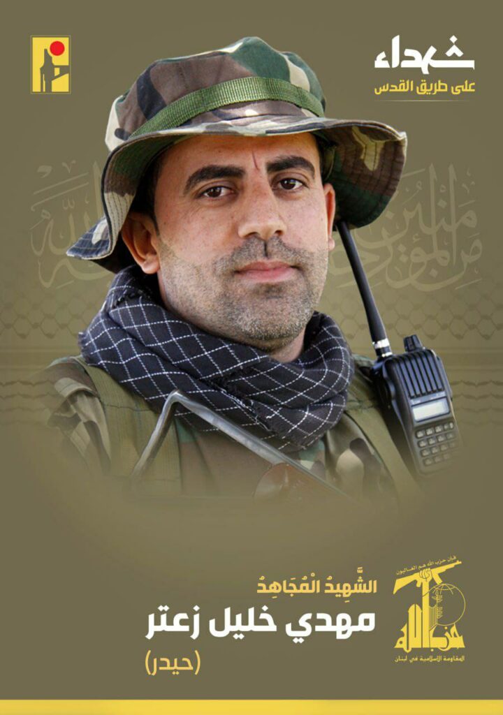 أصدرت المقاومة الإسلامية بياناً زفت فيه الشهيد مهدي خليل زعتر. وجاء في البيان: «بمزيد من الفخر والإعتزاز، تزف المقاومة الإسلامية الشهيد المجاهد مهدي خليل زعتر «حيدر» من بلدة مركبا في جنوب لبنان، والذي ارتقى شهيداً على طريق القدس».