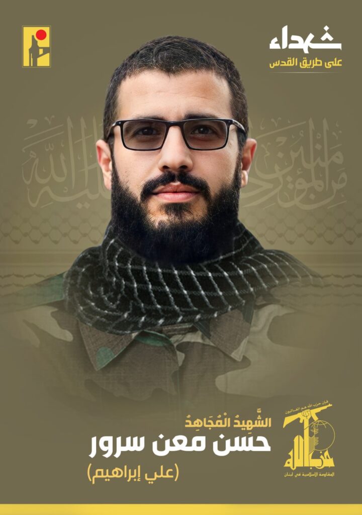 زفت المقاومة في بيان شهيدا جديداً وجاء فيه: «بمزيد من الفخر والإعتزاز، تزف المقاومة الإسلامية الشهيد المجاهد حسن معن سرور «علي إبراهيم» من بلدة عيتا الشعب في جنوب لبنان، والذي ارتقى شهيداً على طريق القدس».