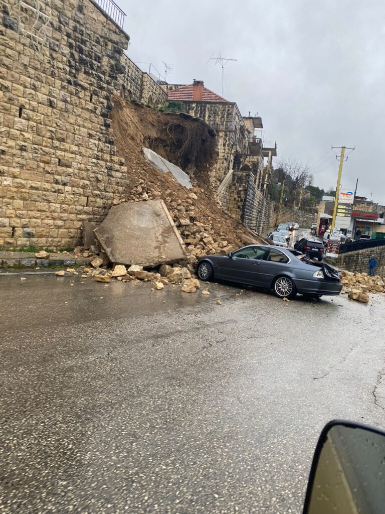 أدت غزارة الأمطار وكثافة السيول الى إنهيار حائط ضخم في ساحة بيت الدين وتضرر سيارة من دون وقوع إصابات.