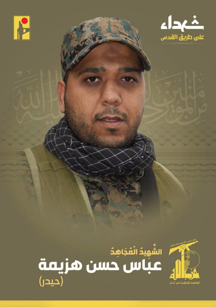 بمزيد من الفخر والإعتزاز، تزف المقاومة الإسلامية الشهيد المجاهد عباس حسن هزيمة «حيدر» من بلدة ميس الجبل في جنوب لبنان، والذي ارتقى شهيداً على طريق القدس.