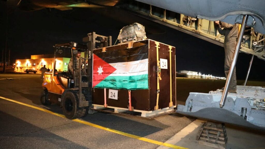 في عملية إنزال جوي أردنية – فرنسية مشتركة نفّذت طائرات من طراز C130، تابعة لسلاح الجو الملكي الأردني وسلاح الجو الفرنسي إنزالين جويين على محيط المستشفى الميداني الأردني الخاص في خان يونس جنوب قطاع غزة.