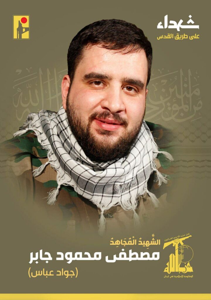 فيما تضمن البيان الثاني ما يلي :”بمزيد من الفخر والإعتزاز، تزف المقاومة الإسلامية الشهيد المجاهد مصطفى محمود جابر “جواد عباس” من بلدة محيبيب في جنوب لبنان، والذي ارتقى شهيداً على طريق القدس”.
