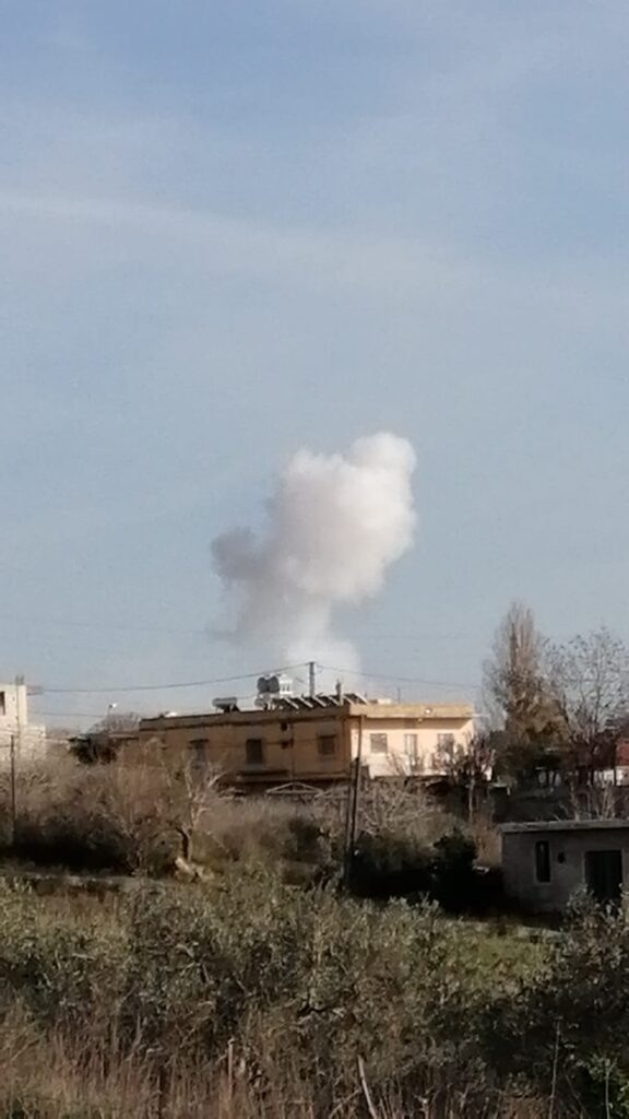 إحدى الصواريخ التي أطلقتها المُسيرة سقطت في كرم زيتون محاذي لمنزل يعود لشخص من الـ القلحاني، ولولا العناية الإلهية، كان هناك مجزرة، اذ أشارت المعلومات إلى أن العائلة كانت خارج المنزل الذي أصيب بشظايا الصاروخ، وألحقت أضراراً مادية في المكان.