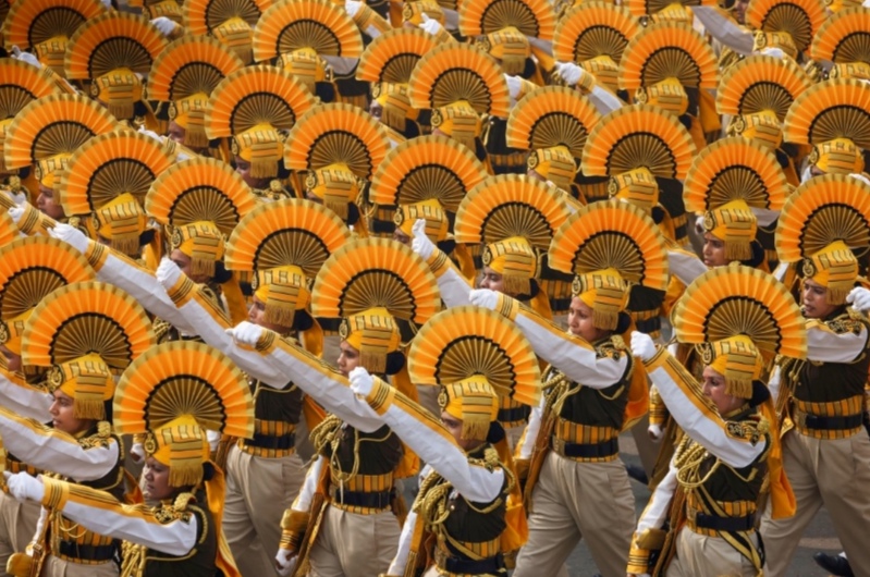 وحضر ماكرون ومودي جنباً إلى جنب العرض العسكري من منصة الشرف في مراسم جمعت بين التقاليد الموروثة عن الامبراطورية البريطانية ورموز الهند الحديثة.