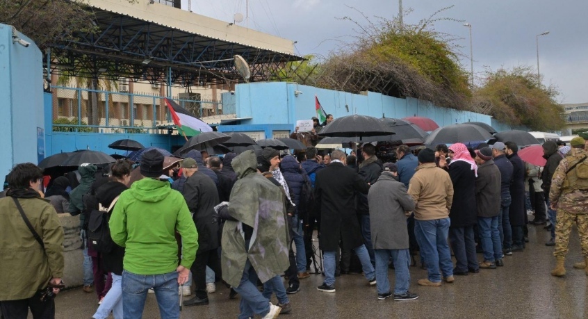 نظم العمل الجماهيري في “حركة حماس” في لبنان وقفة احتجاجية أمام مقر الأونروا في بيروت استنكاراً لقرار عدد من الدول المانحة وقف تمويلها للأونروا وتمسكاً بدور الأونروا في تقديم الخدمات والإغاثة.