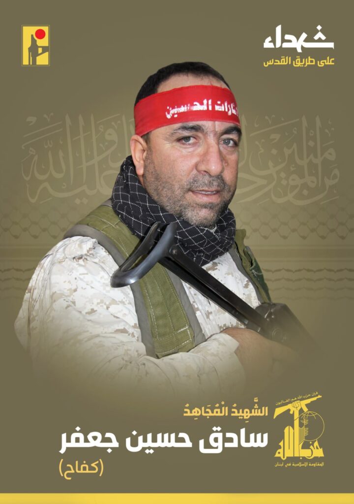 كما زفت الشهيد المجاهد سادق حسين جعفر “كفاح” مواليد عام 1970 من بلدة جرماش في البقاع، والذي ارتقى شهيداً على طريق القدس.